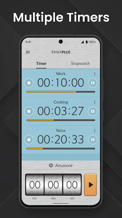 Timer empowers you with the ability to set up and manage multiple timers simultaneously. Whether you're working on various projects, organizing your daily routines, or simply need to time different activities, Timer Plus has got you covered. Take control of your time like never before.