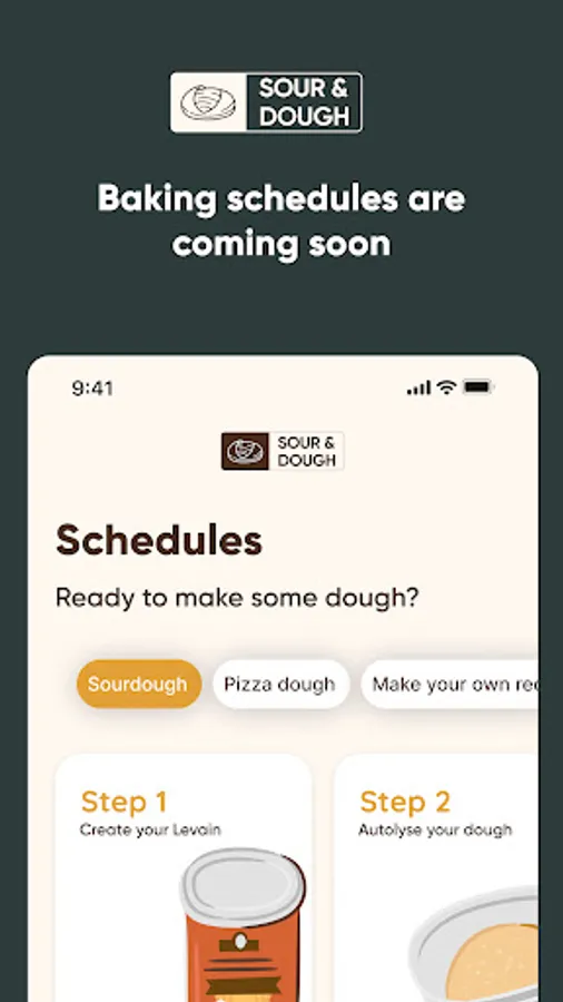 - Schedules with timer. The app will tell you when it's time to fold the dough, when the autolyse is done and when you'll need to pre-heat your oven.