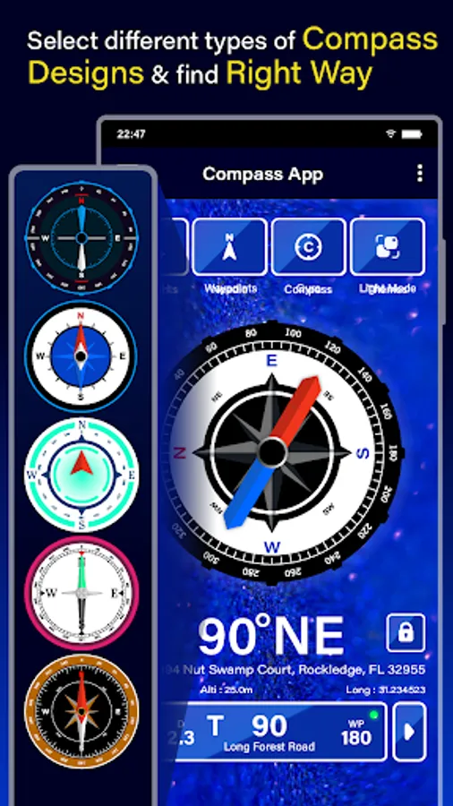 Multiple compass styles and dials for users. Simple accurate and quick choose and apply