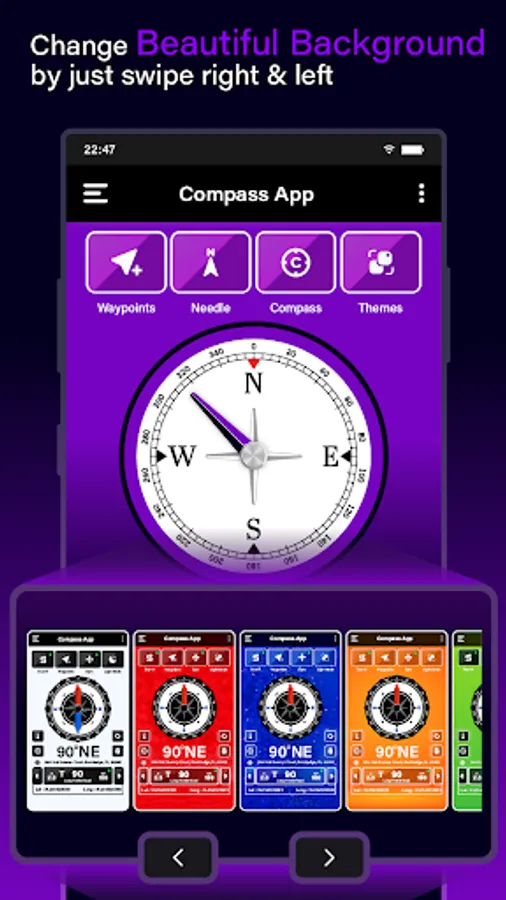 Digital Compass Find Direction has many user-friendly themes. Android users can select from multiple themes available in free application.