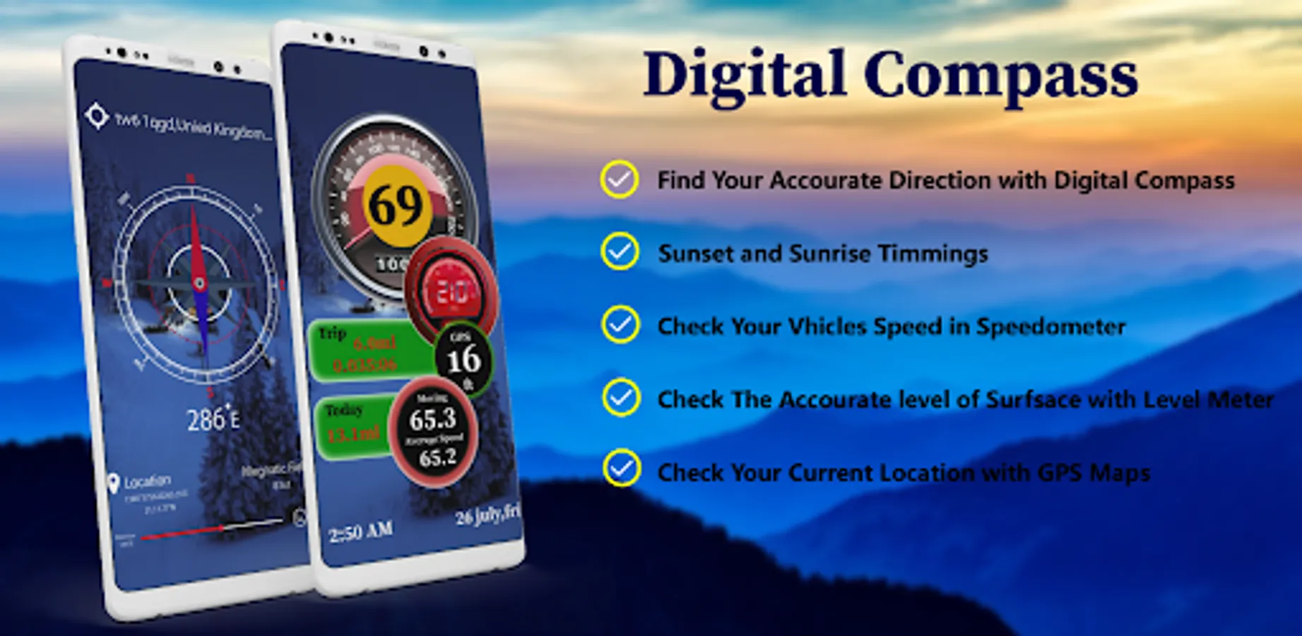 Super Gps Smart compass free finds your actual position (using GPS) and determines all geographical directions. When travel or lost your way then check your direction by digital compass for Android with GPS map & the weather free.