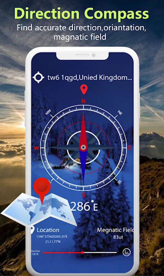 Super Digital compass build using the gyroscope, accelerator, magnetometer, gravity of the device. Make sure your device has an accelerator sensor and magnetometer sensor otherwise digital compass will not function. Compass direction sets your direction by rotating the bezel and determine the direction where you currently facing on compass map. Compass 360 shows real-time orientation to magnetic fields and true north.