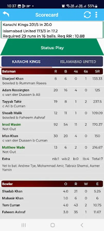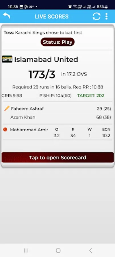 Live score update.