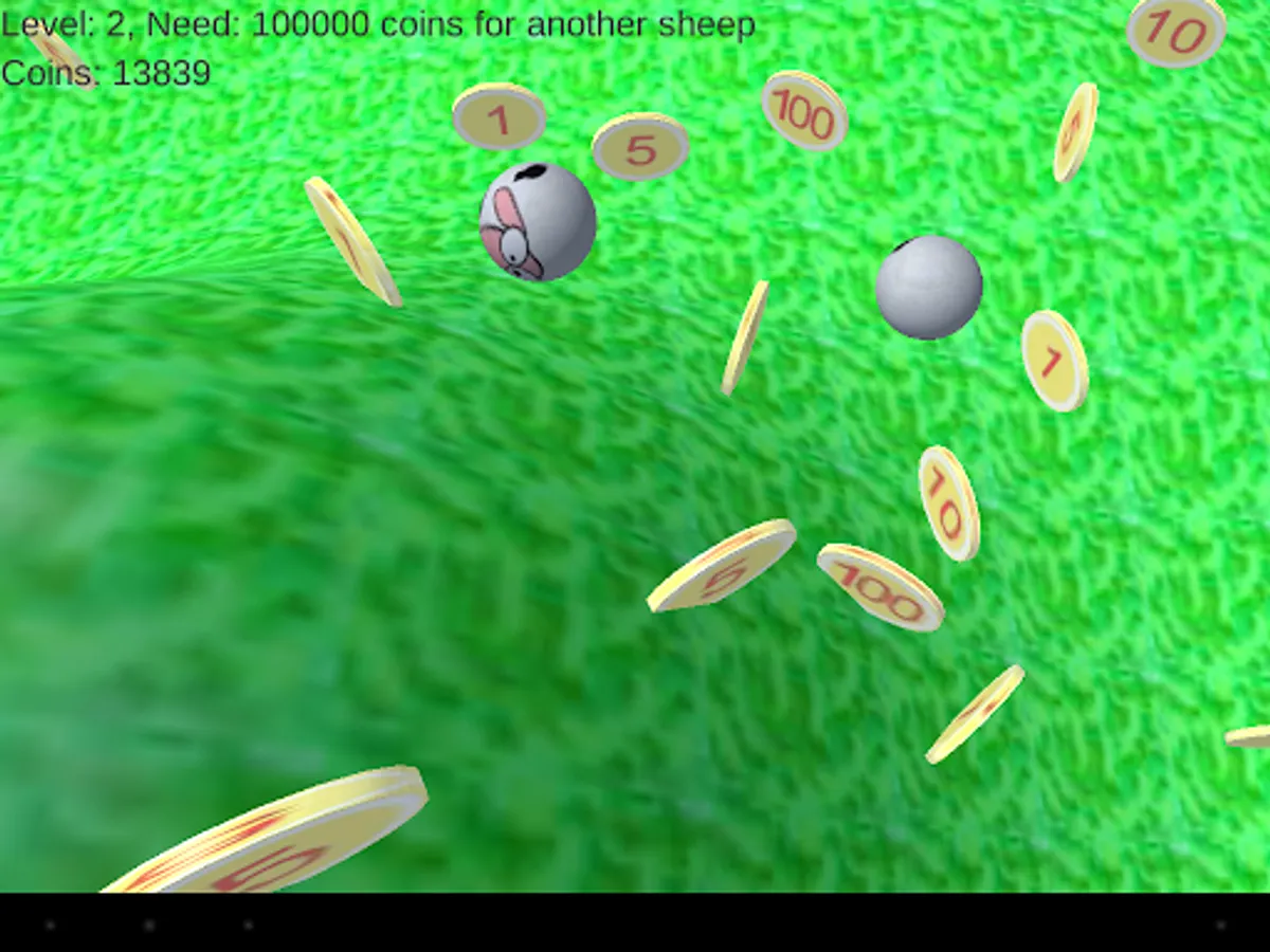 Start the game with your phone/tablet level (as if it has a marble on it). You control the round little sheep by simply tilting your phone or tablet in the direction they should roll. Roll the funny little sheep around collecting coins. When you get all the sheep in the fenced pasture, they give off a poof of joy and then they start a new round with a fresh batch of coins. If you have enough coins, a new sheep is bought and added to your fold, and you can collect gold coins all the quicker!