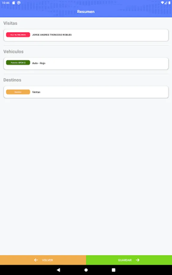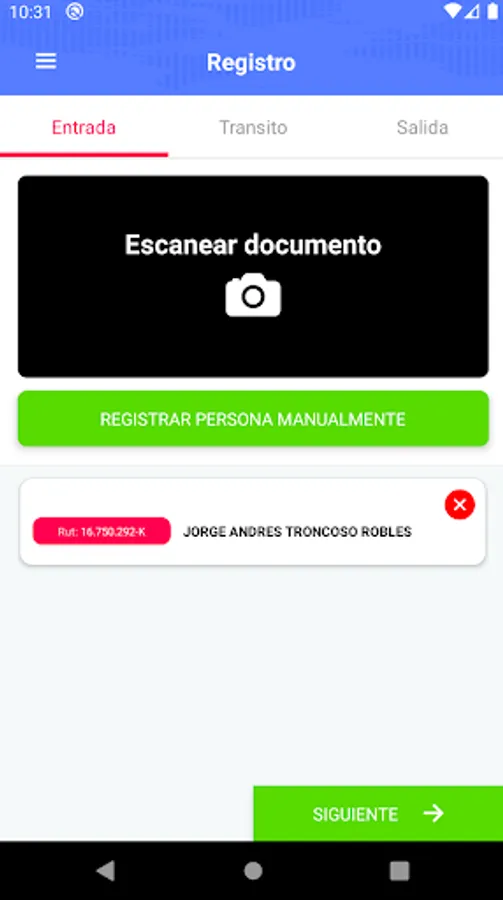 Access Control application by reading the identity card, vehicle registration if applicable and registration of the destination to which the person is going.