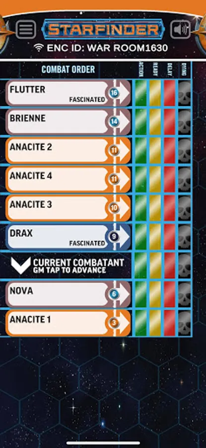 The Starfinder Combat Tracker app keeps track of turn order and conditions for the whole party! It's all the goodness of the Starfinder Combat Tracker Pad in a fantastic pocket-friendly app for you and your party to use everywhere you go.