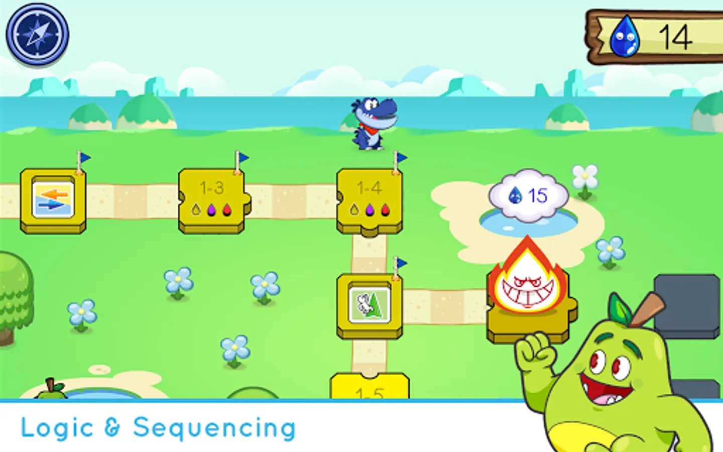 Think outside the screen with a puzzling new way to play. Put Puzzlets together on the Play Tray to control what happens in the game. Build programs out of real pieces, then run them in the game to help Rus the Dinosaur, Sydney the sloth, and Hippo the Hedgehog save Pear Island from an erupting volcano.