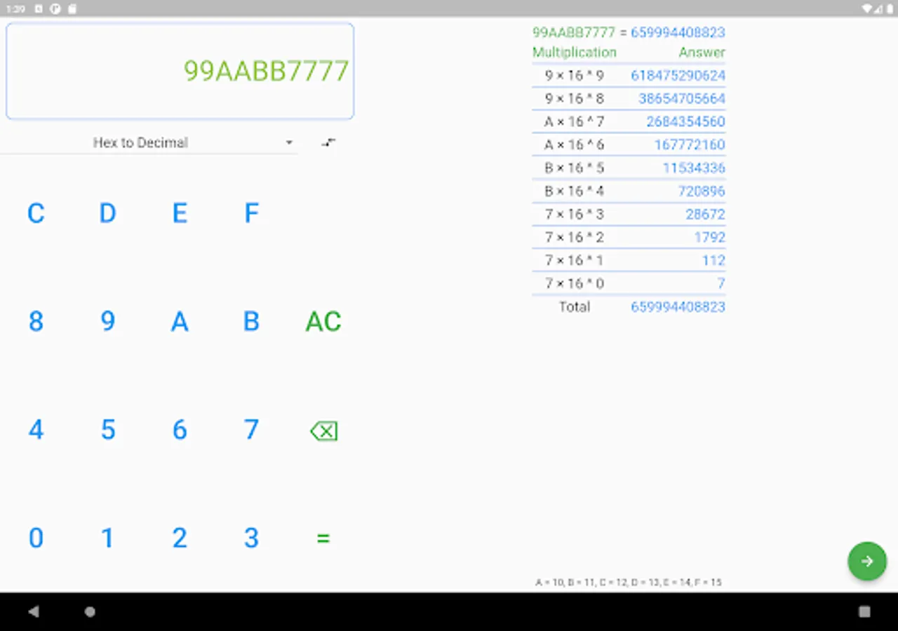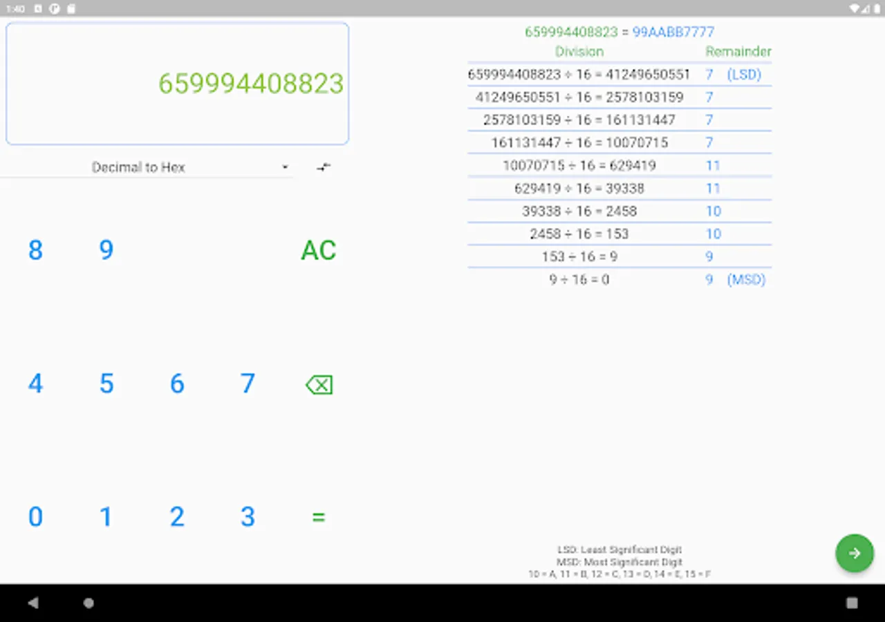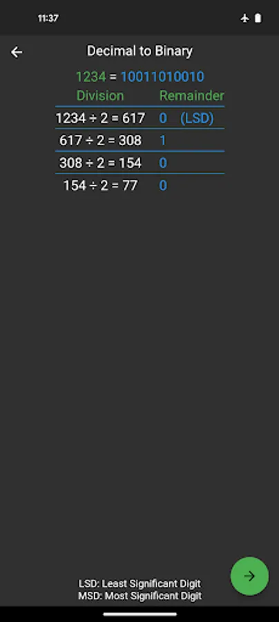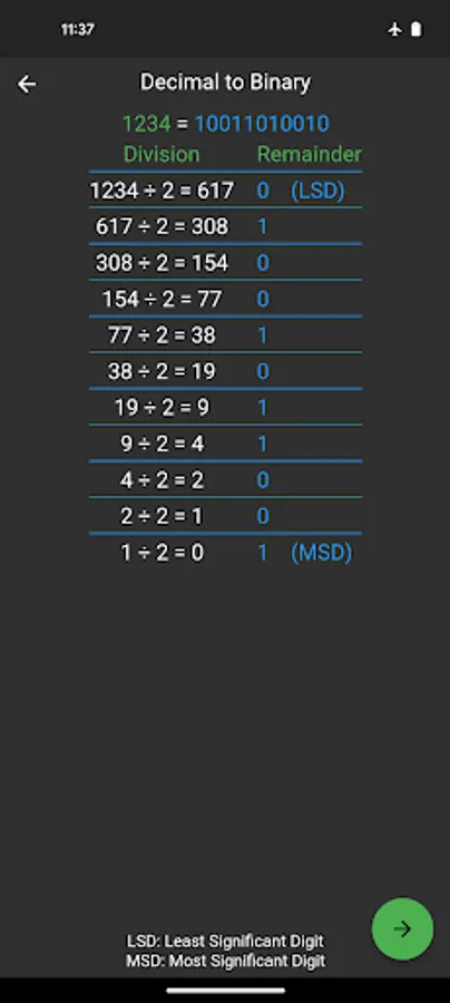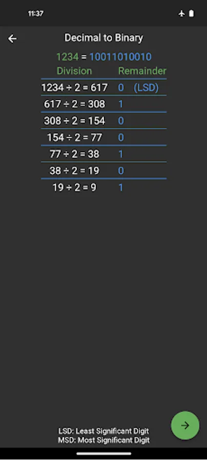 This app will show easy-to-read steps of conversion. There is a next button in the steps screen that makes it easy to see each step animated.