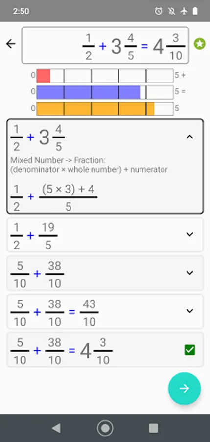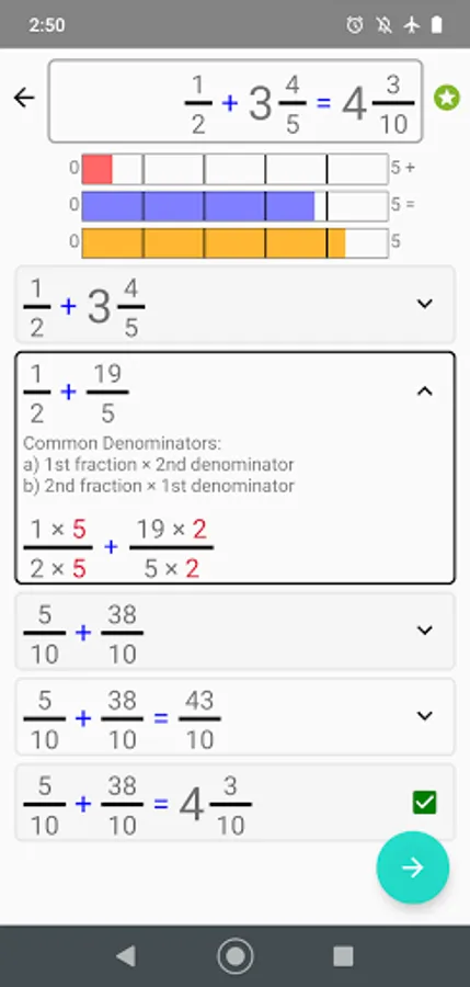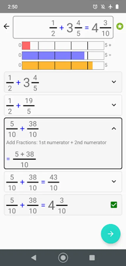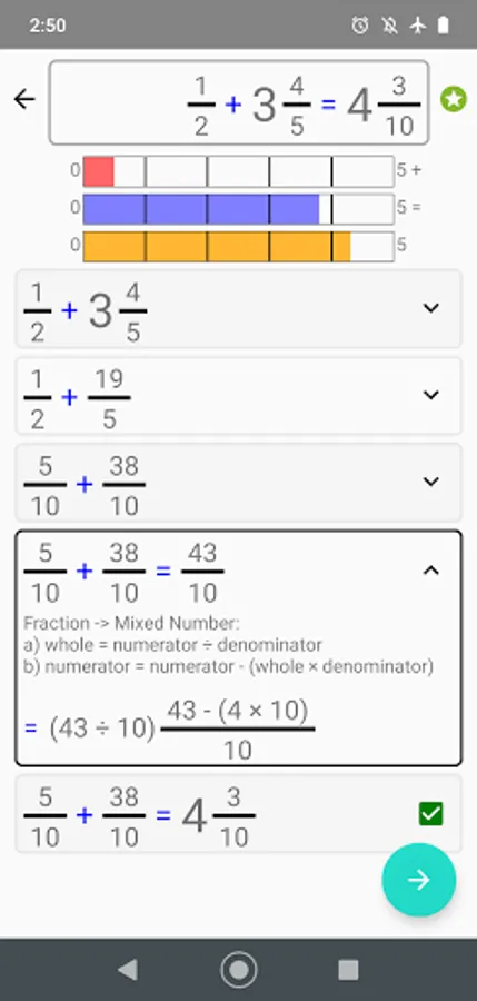 Fractions Calculator provides easy to follow detailed solution and visual aid. With this app you will get an easy to use keyboard that gives the option to enter a whole number and a fraction numerator and denominator without the need to move the cursor.