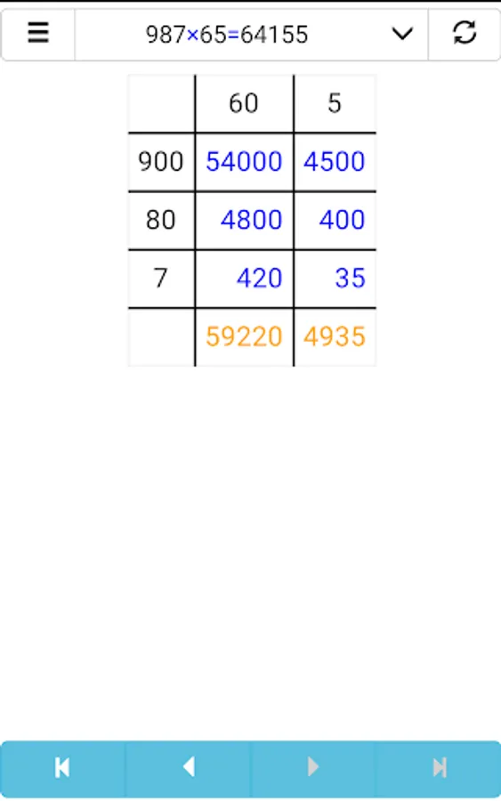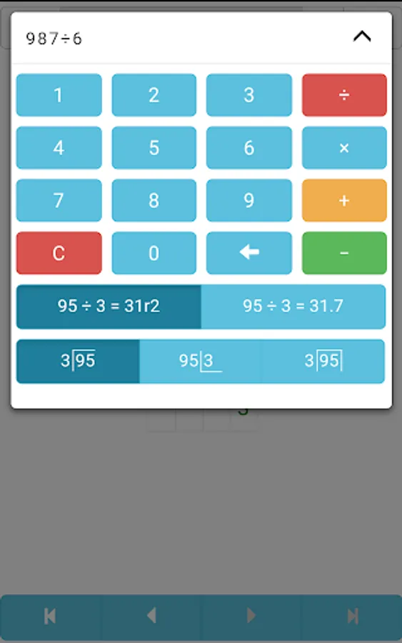 - 4 operations (division, multiplication, addition and subtraction)