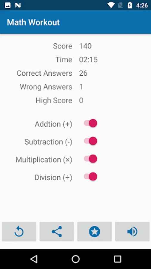 At the end of the countdown, users will see the score, number of correct answers, number of wrong answers, total time spent and the highest score recorded so far.