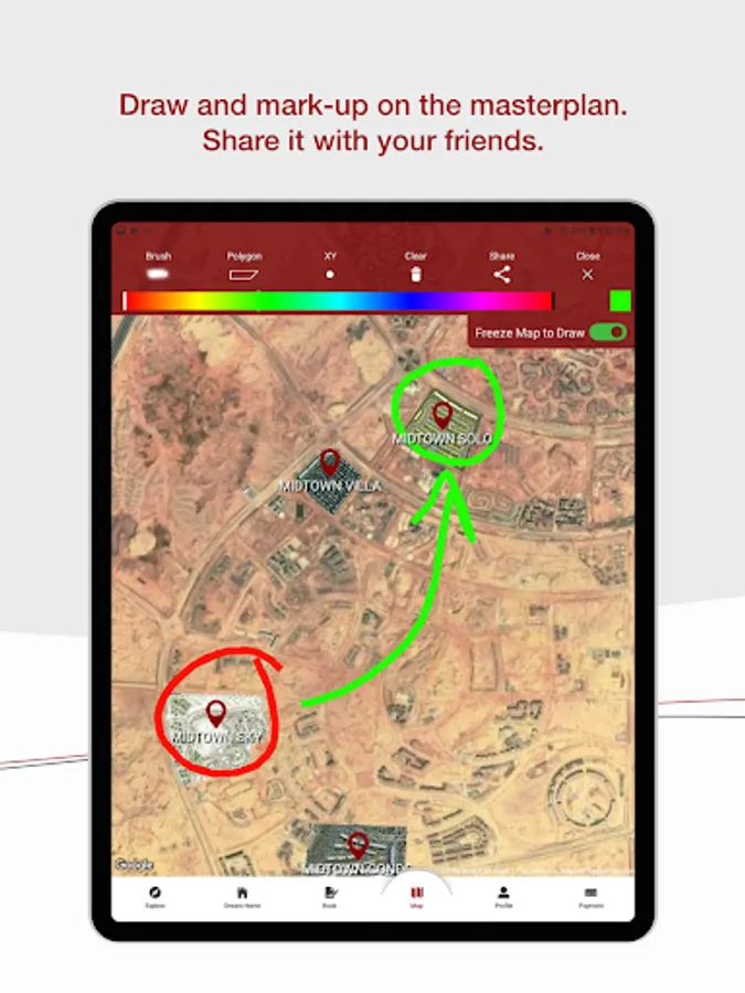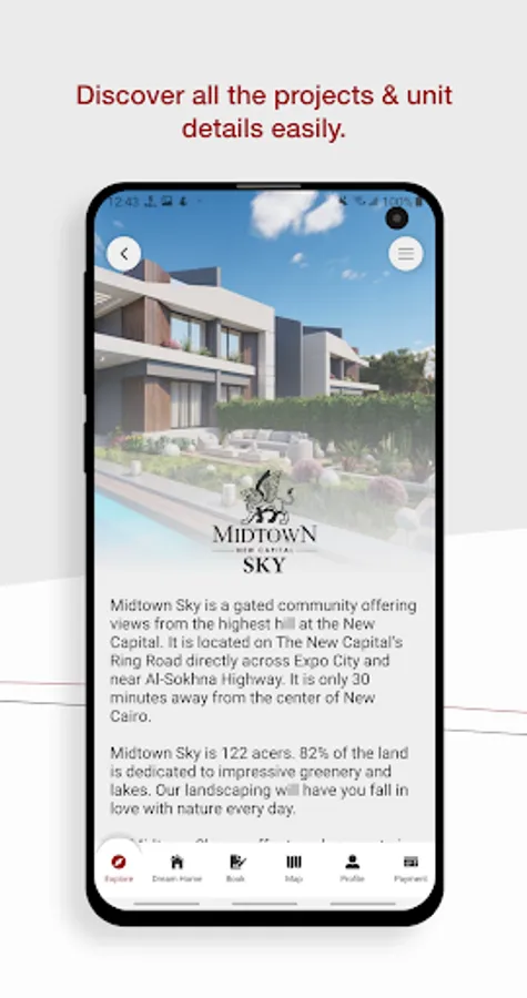 Using the app allows you to fully explore all our residential and commercial projects, search units, make payments, view unit types, browse images, and watch videos. The GIS powered masterplan is fully interactive with real time GPS, and driving directions to any of our projects. Tap on any of the buildings for detailed information on the map, along with powerful offline search for any project or unit.