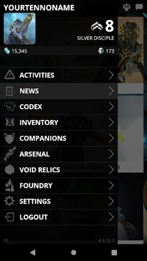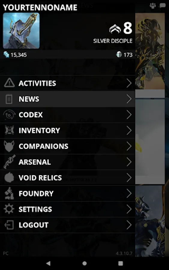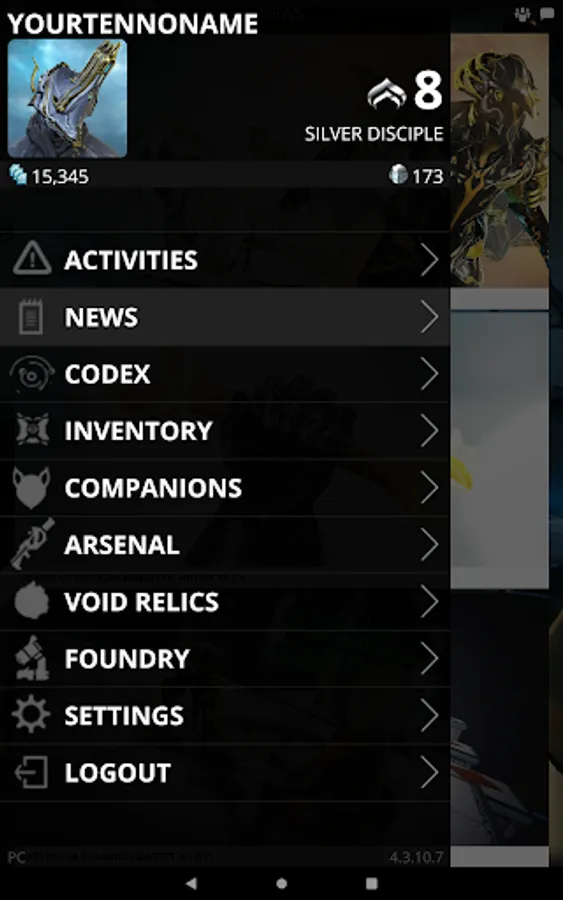 Stay connected using Warframe companion app and get the latest news. Login using your PC, PlayStation Network, Xbox Live, or Nintendo account to receive the best experience.