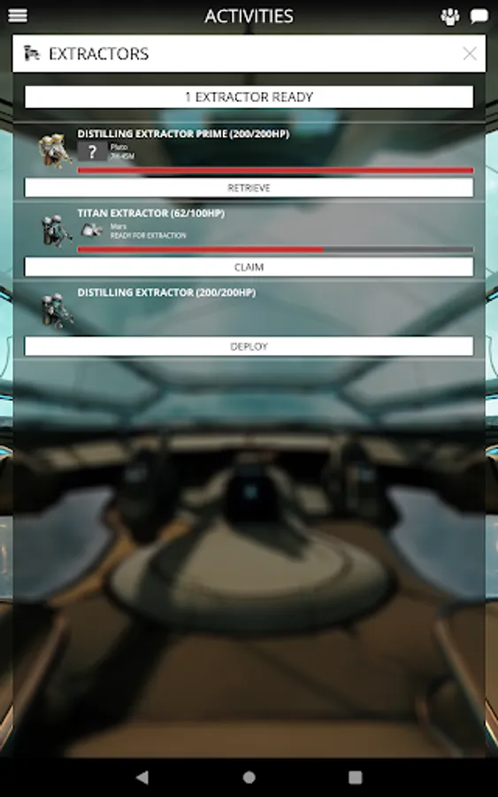 Deploy Extractor Drones with ease right from the Warframe App. Gather resources such as Orokin cells, Plastids, and Neurodes.