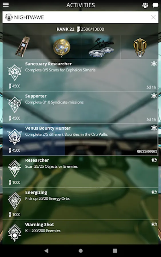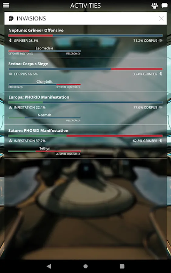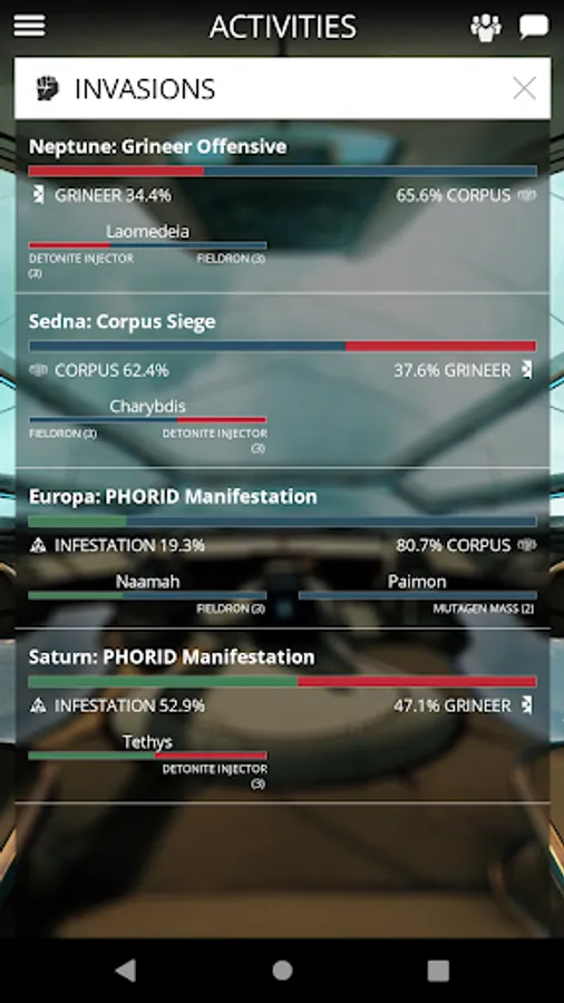 Get notifications of new Alerts and view active Invasions, Sorties, and Void Fissures