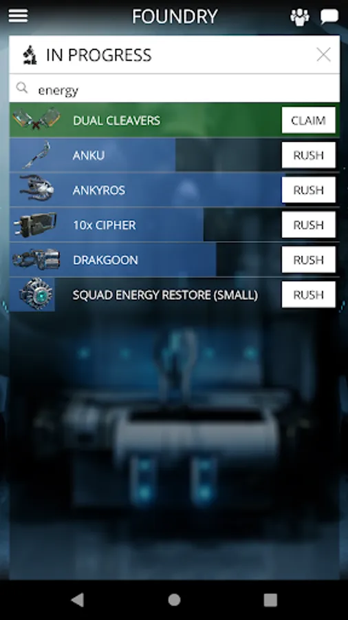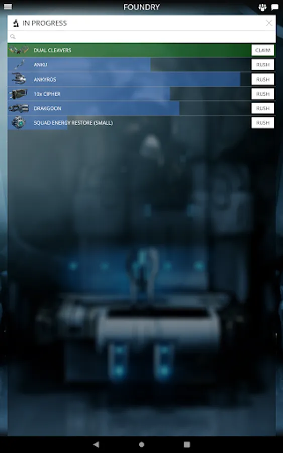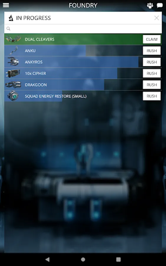 Your Foundry is hard at work — even when you're offline. Build the latest Warframes, Weapons and gear right from your phone.