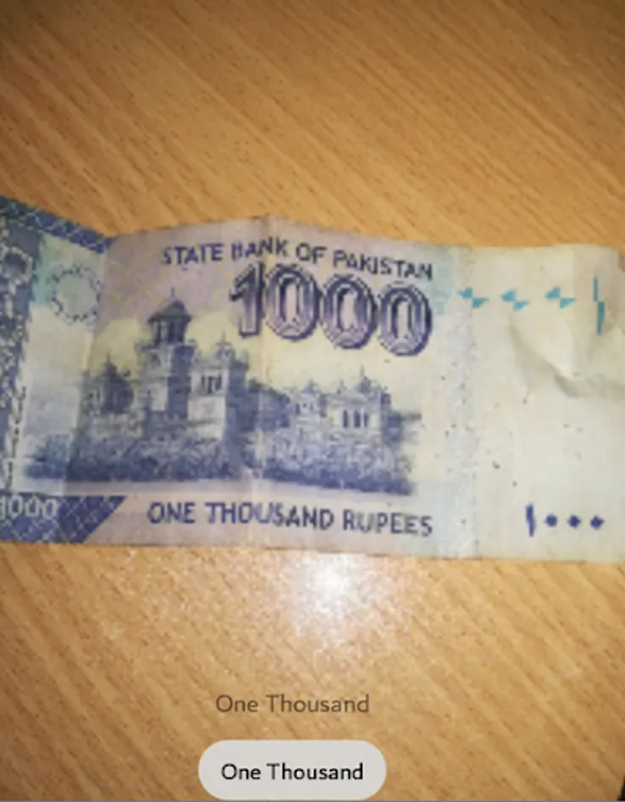 While using text recognition technique in currency recognition the system will recognize the text written on the currency notes image captured by a user. If the image is of front side of currency note the system will recognize seven-digit serial number with prefix appears at the right top and the other number appears below the watermark at the left bottom of the note and will ask the user to flip the note and capture the image once more time. If the captured image is of back side of currency note then the system will recognize the text that appears near right bottom representing the value of currency alphabetically, the system will pick the text and convert that text in audio using text to speech technology. While using text recognition technique in menu recognition the system will recognize the text written on the menu image captured by a user. The system will recognize the text that appears on the menu that tells the foods items available at the restaurant with their prices, the system will pick the text and convert that text in audio using text to speech technology. When a user get to know about the food items available at the restaurant, he/she can place order while the system will listen to user’s input and order will be placed and order placement message will be received.