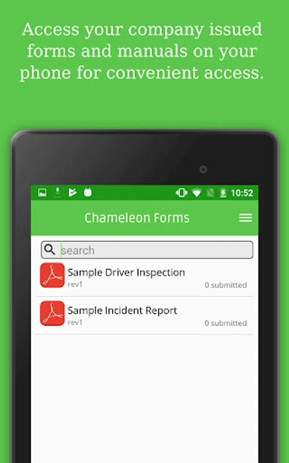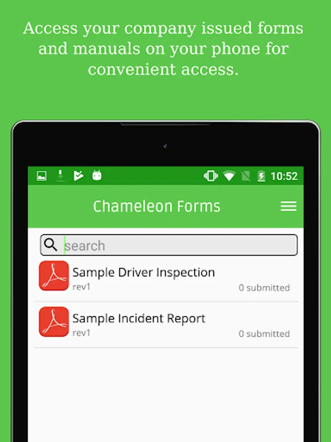 Chameleon Forms is an app with a web based management system that lets companies upload their own PDF forms and organize documents and forms from a web based administration system.