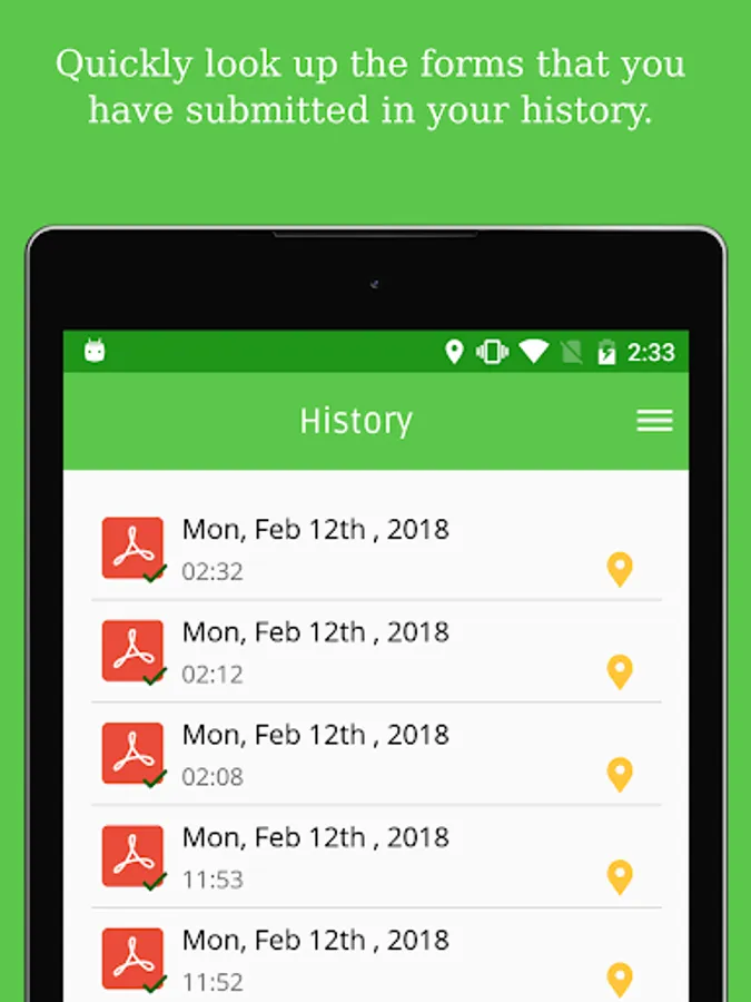 - Filled out forms are automatically archived and made available on a web based file management system for easy retrieval.
