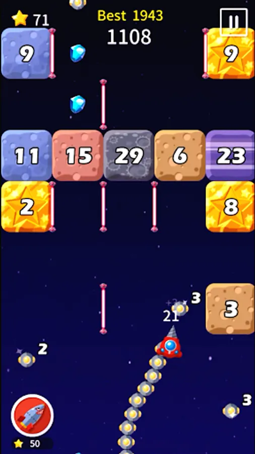 - Control by Swiping Left/Right! Spaceship will break the bricks once it encounters it!