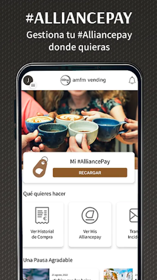 In the AlliancePay app you will find the most comfortable and easy way to top up your #AlliancePay card and you can forget about coins. With it, you can choose the products you want in the AMFM Vending vending machines.