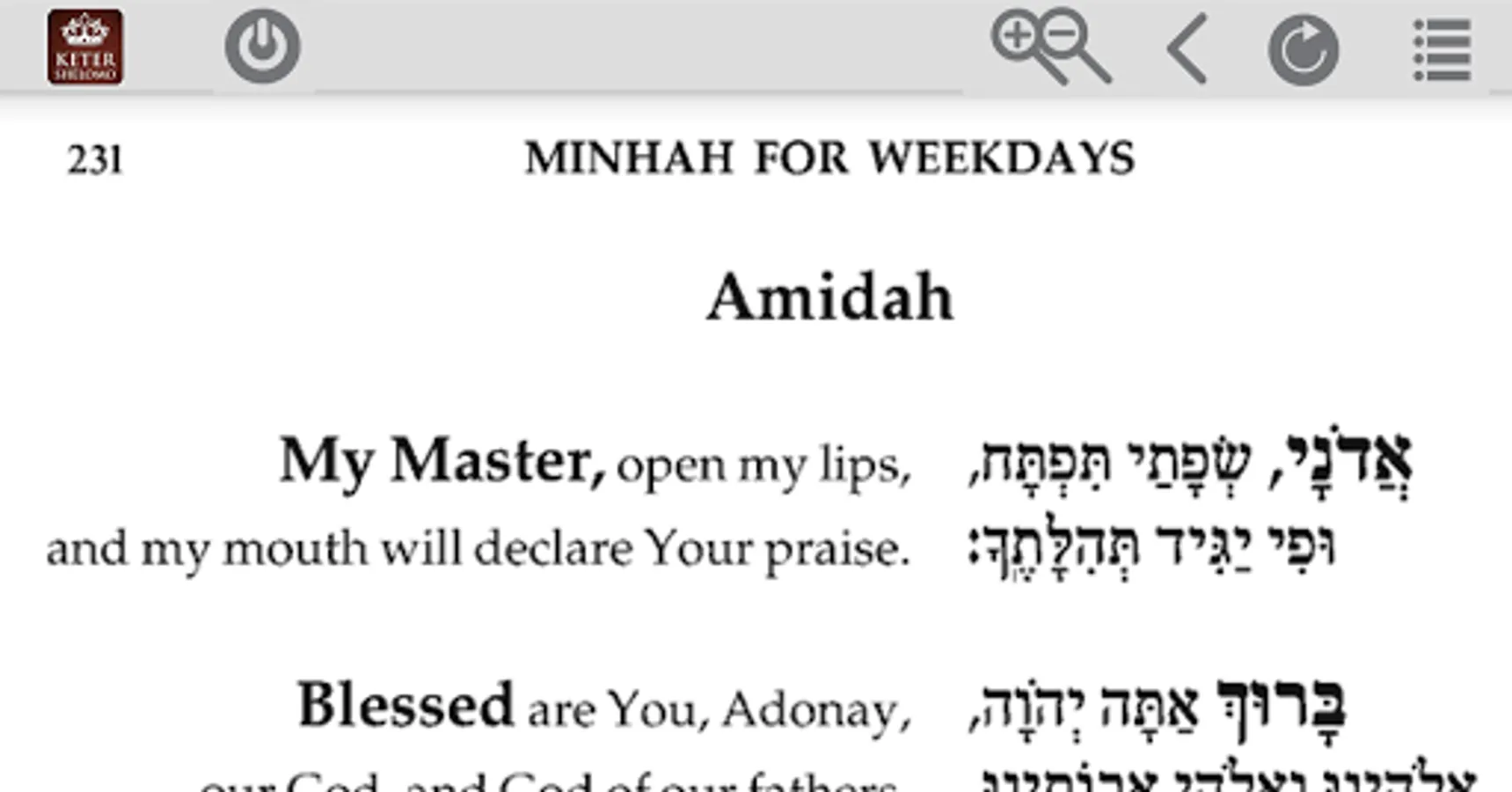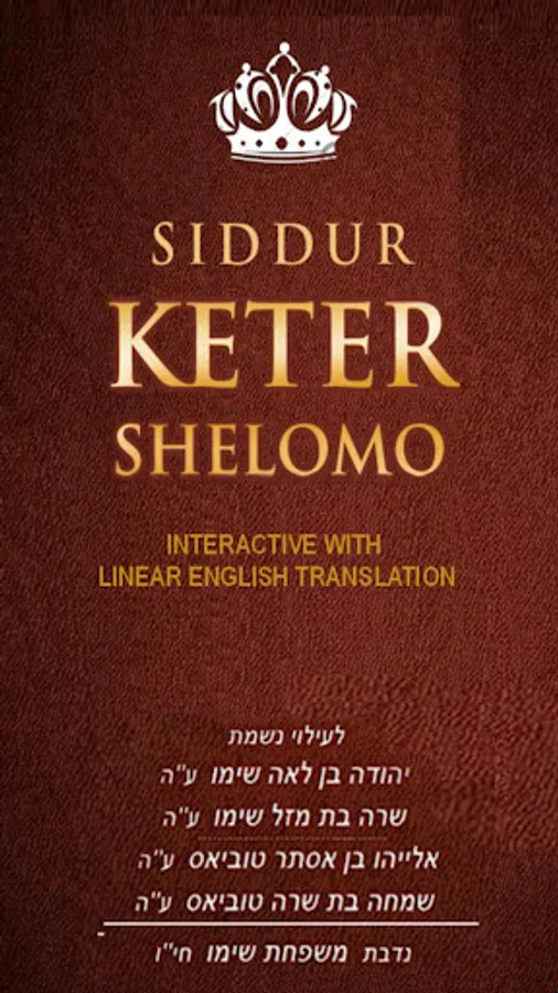 This Interactive Android App is based upon the weekday portions of the print Siddur Keter Shelomo as beautifully translated and compiled by Rabbi Shelomo Churba, according to the Minhag of most Sephardic communities, specifically to the Minhag of the (Halabi) Syrian Jewish community of Aram Soba, the ancient name for Aleppo.
