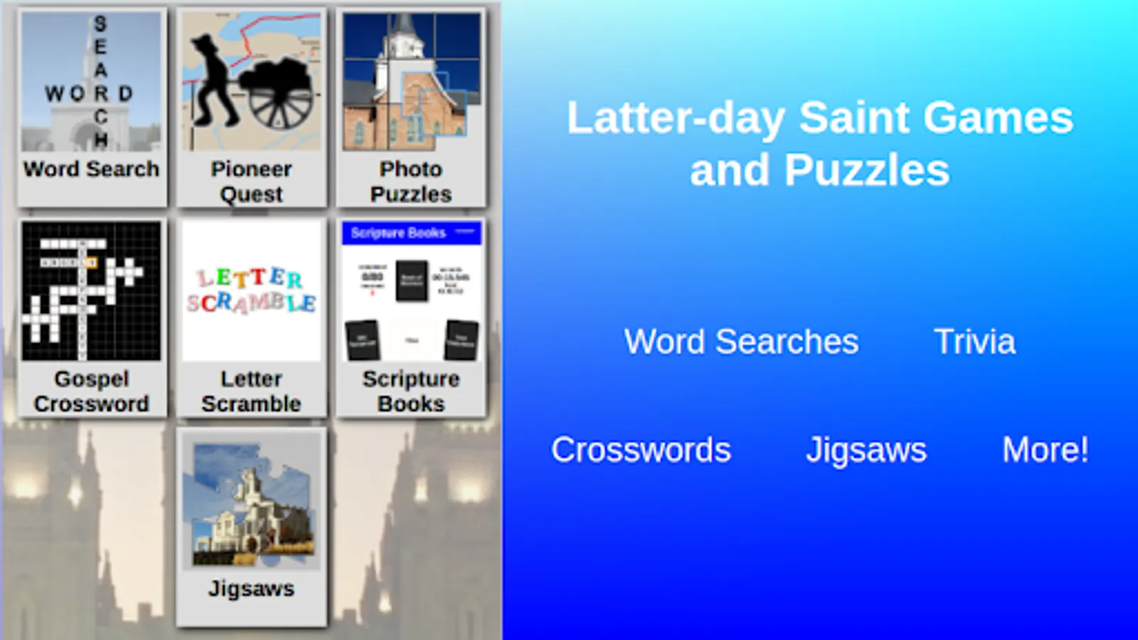 Games and Puzzles related to The Church of Jesus Christ of Latter-day Saints. Often informally known as the LDS Church or Mormon Church, The Church of Jesus Christ of Latter-day Saints is the restoration of the Church established by Jesus Christ and his apostles during their early ministry.