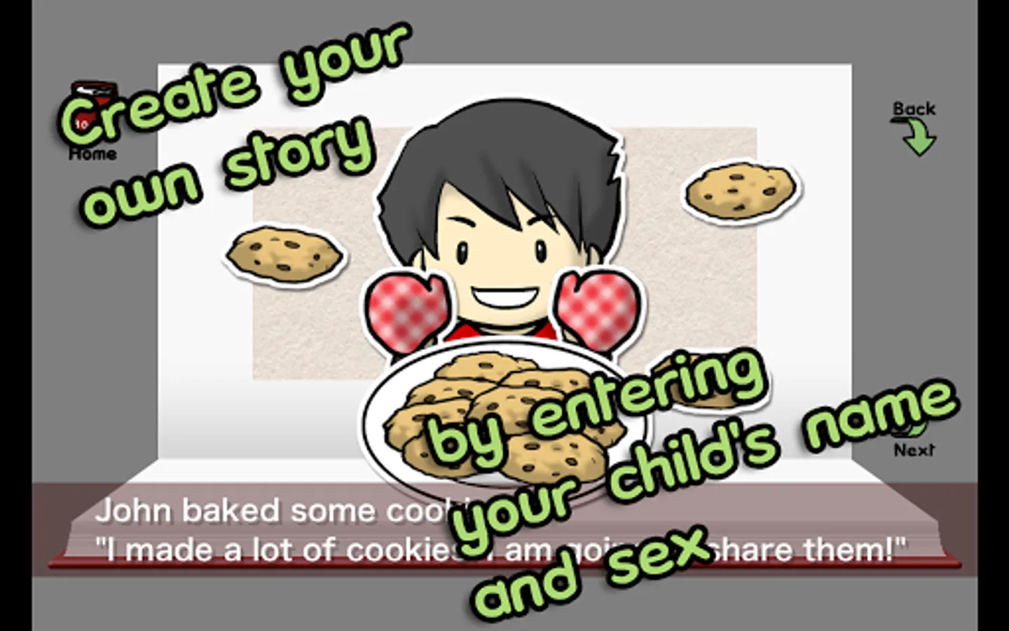 A picture book about sharing cookies with your animal friends. By entering in your child's name and age, you can create a personalized story for your child in which they are the main character.