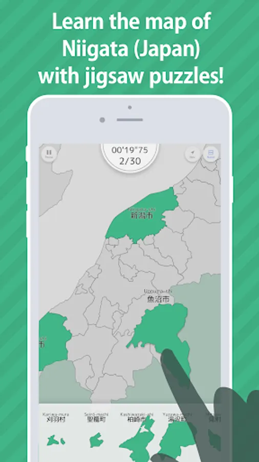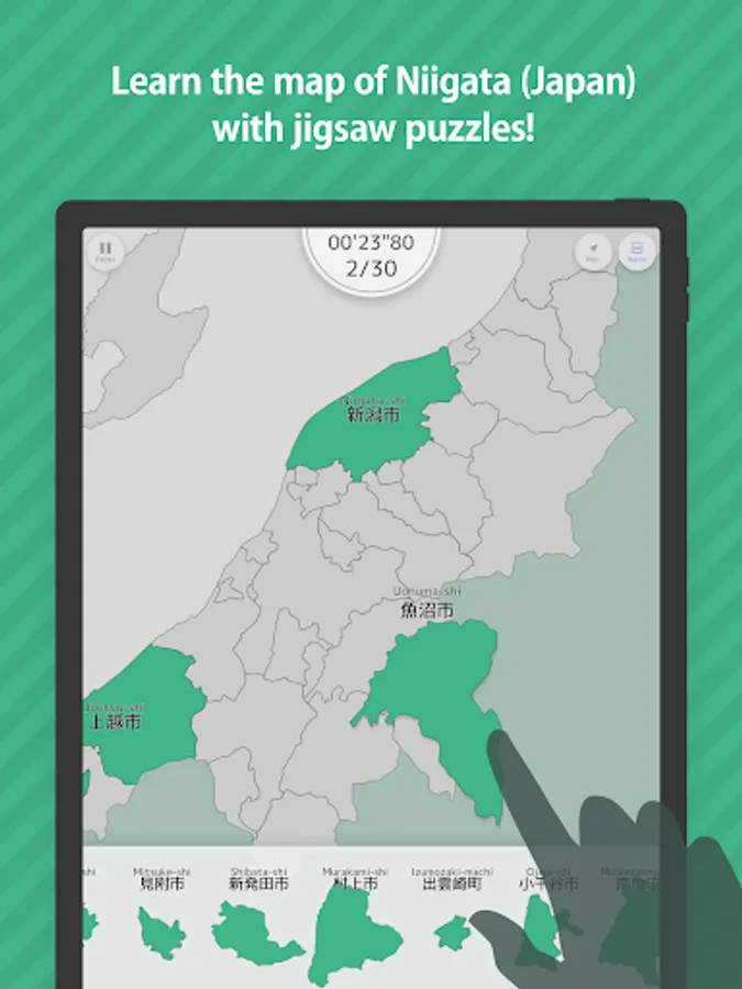 Memorize the cities of Niigata (Japan) through jigsaw puzzles in this educational game focused on enjoyment and good pacing.