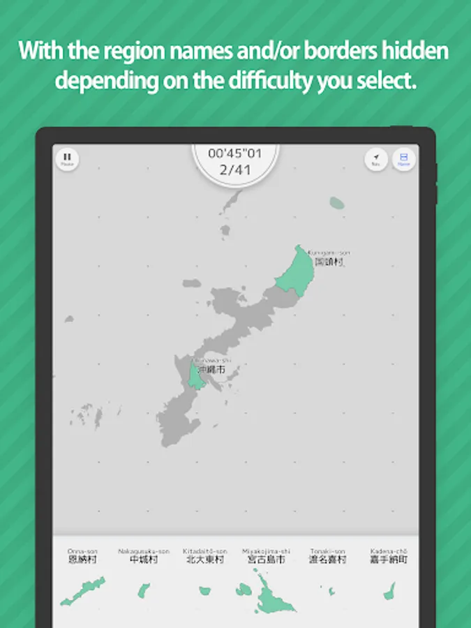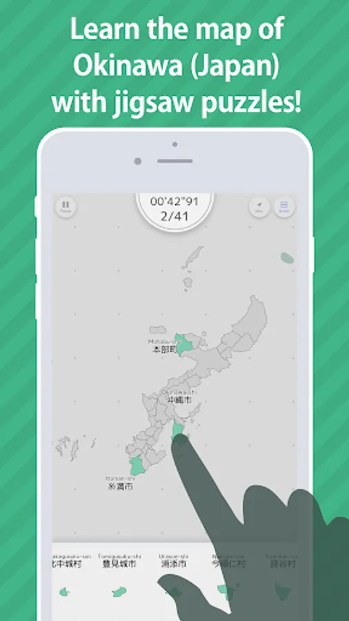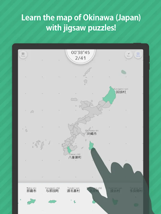 Memorize the cities of Okinawa (Japan) through jigsaw puzzles in this educational game focused on enjoyment and good pacing.