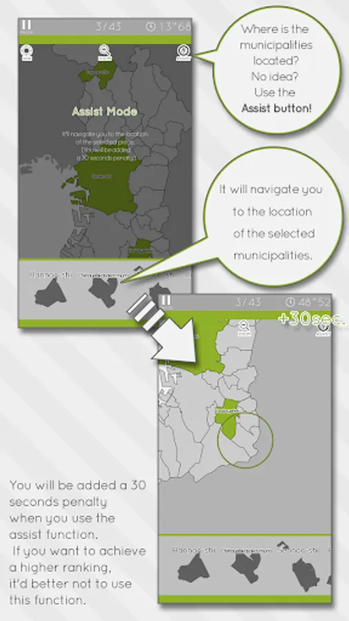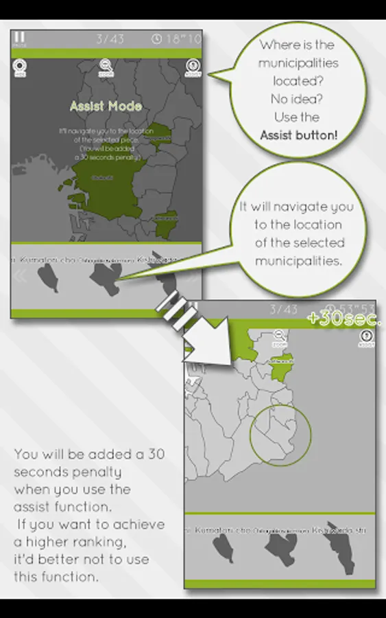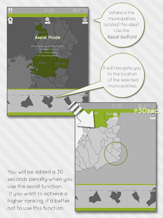 However you will be added a 30 seconds penalty when you use the [Assist] function. If you want to achieve a higher ranking, it'd better not to use this function.
