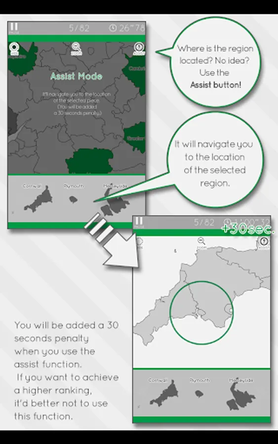 However you will be added a 30 seconds penalty when you use the [Assist] function. If you want to achieve a higher ranking, it'd better not to use this function.