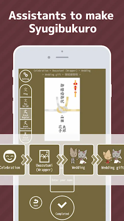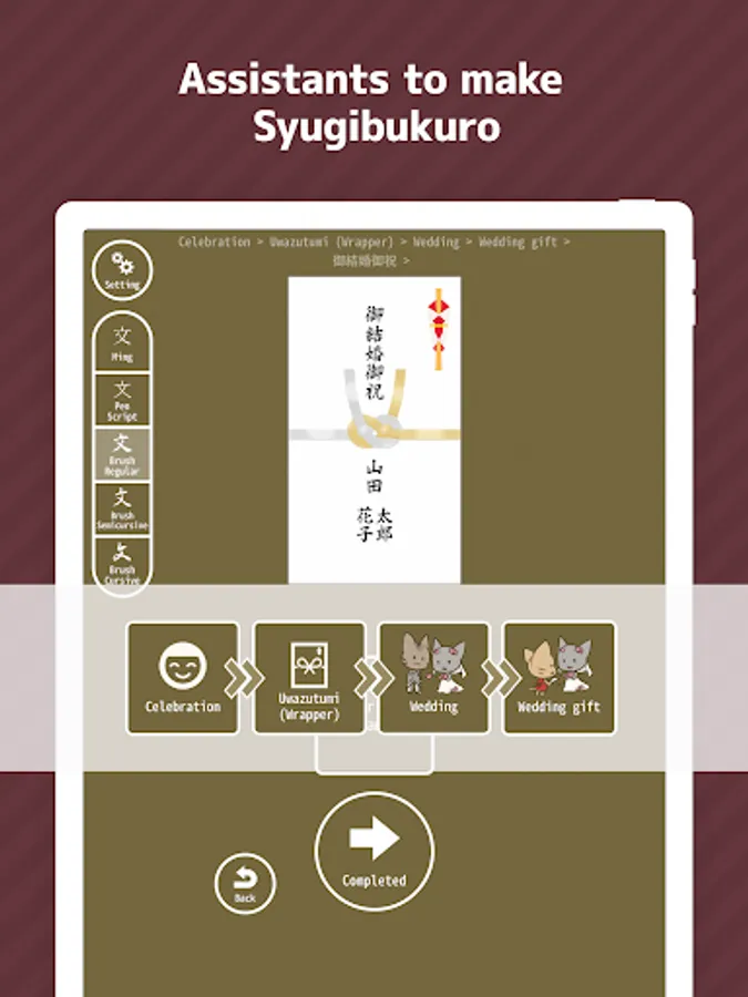 This is an app that allows your to prepare "Shugibukuro" and "Fushugibukuro" a special type of envelope used to give money at weddings and funerals.