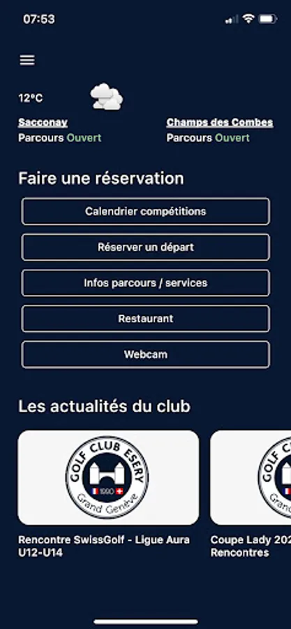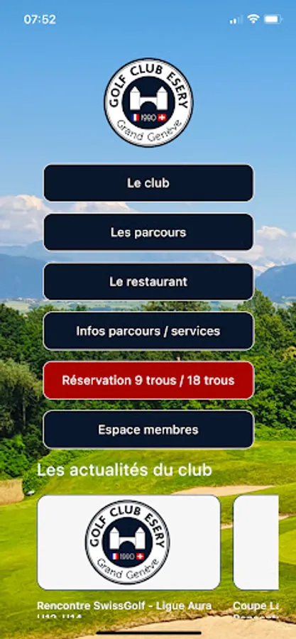 Discover the official application of the Golf Club d'Esery. Presentation of Golf and associated services for exteriors and specific features for Members: