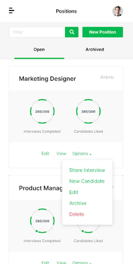 2. Create Jobs: Companies can create jobs and invite millions of candidates to video interviews.