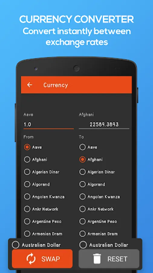 Real-time conversion calculator for currencies and cryptocurrencies from any country.