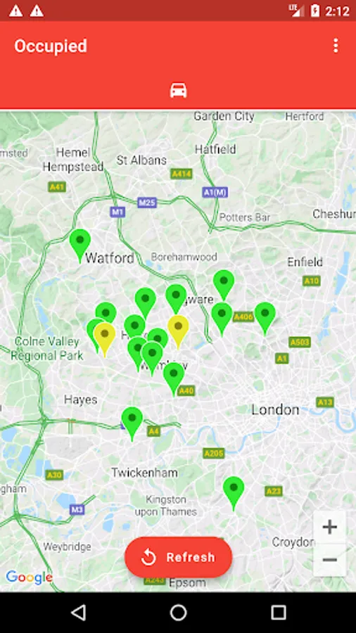 - Color-coded markers showing at a glance which car parks have good, OK and bad availability