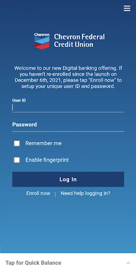 Welcome to Chevron Federal Credit Union Mobile Banking! Some exciting updates to our app include a streamlined look and feel, features to make moving money easier, and a simplified login process for members with multiple memberships.