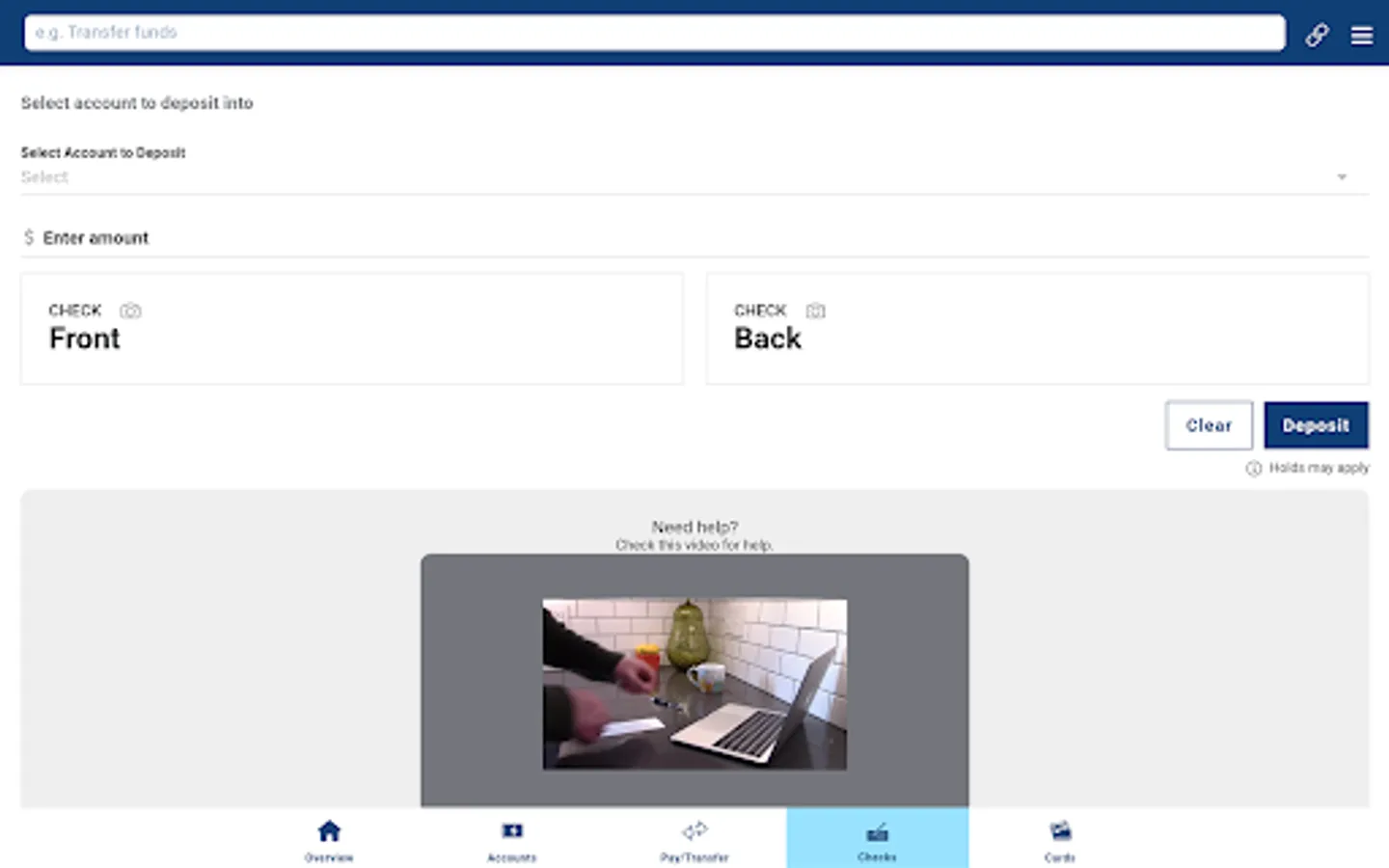 • Use your camera to deposit checks in seconds