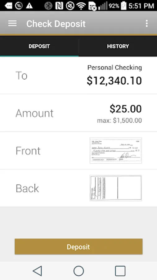 • Deposit checks using the device's camera