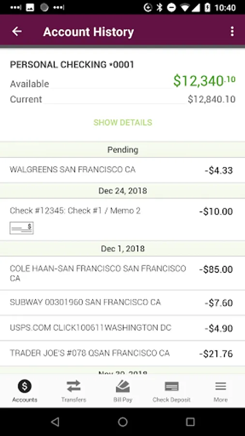• Check available balances & transaction history