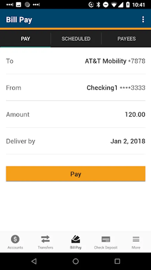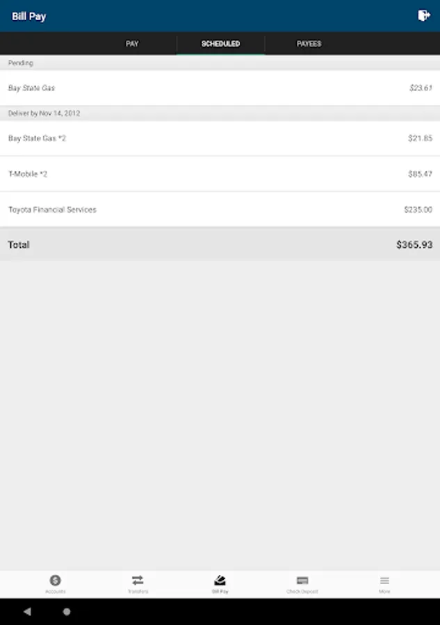 - Pay bills, review scheduled bills, and review previously paid bills from your Android Phone or Tablet.