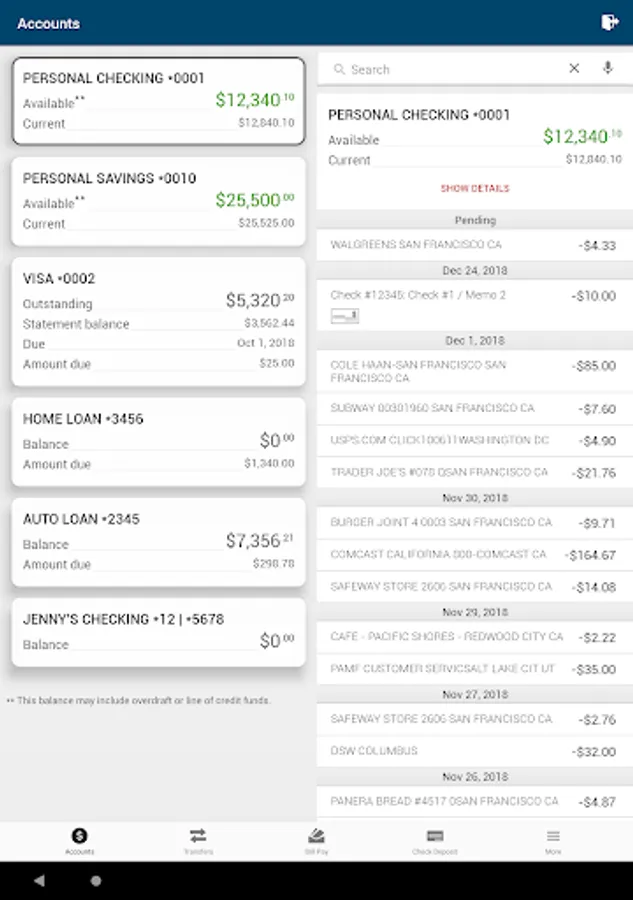 - Check your account balance and search recent transactions by date, amount, or check number. (Available on Wear OS)