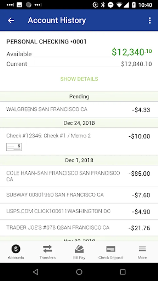· Transfer funds between accounts