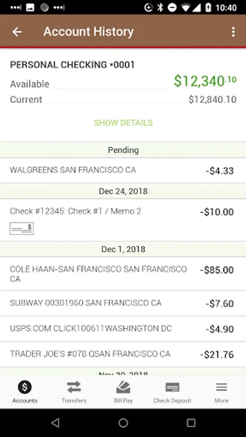 With the tap of your finger, you have the ability to check balances, view account activity and history, pay bills, deposit checks, and make transfers. Wear OS is also available. Access your account anytime, anywhere.