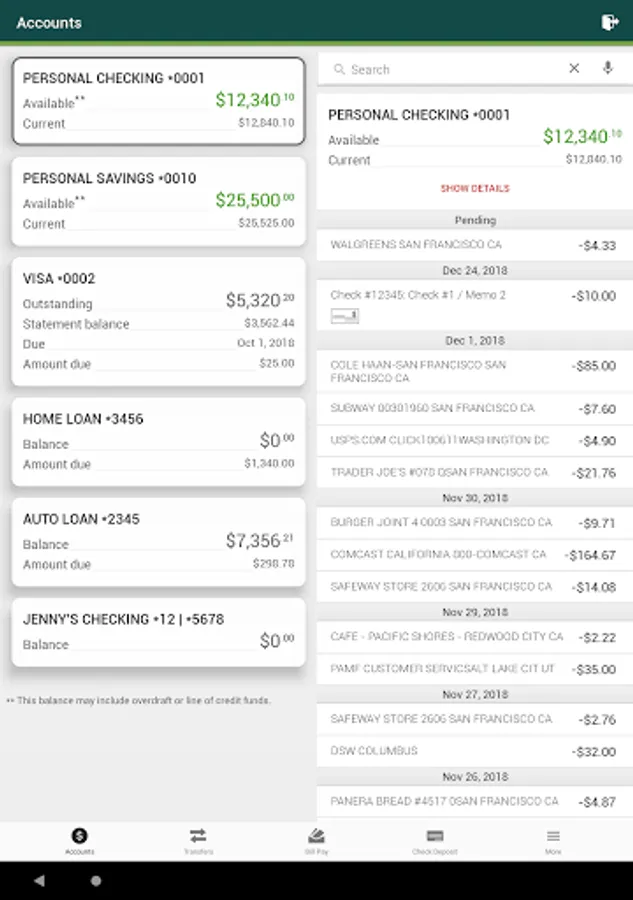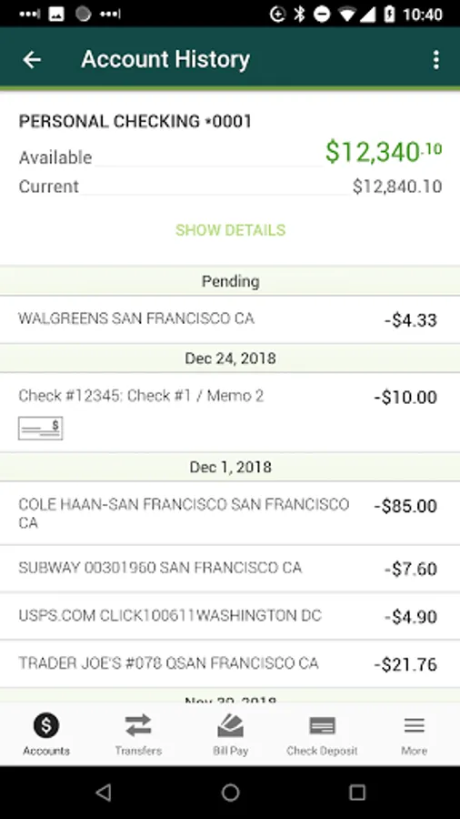 FEATURES OF PEOPLES TRUST COMPANY'S MOBILE BANKING