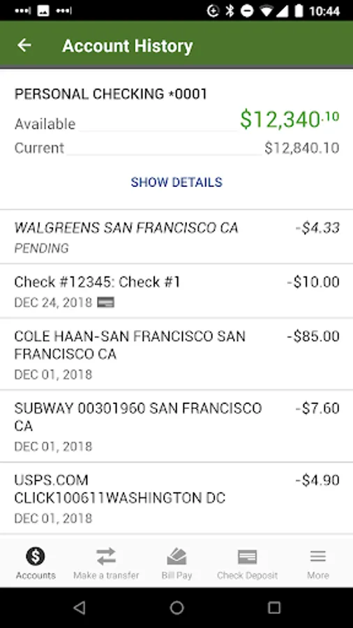 • Check balances and transaction history