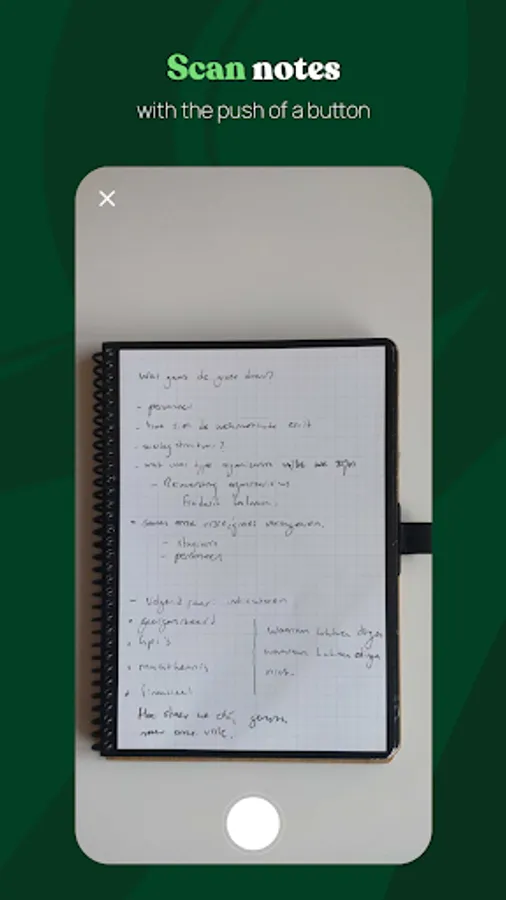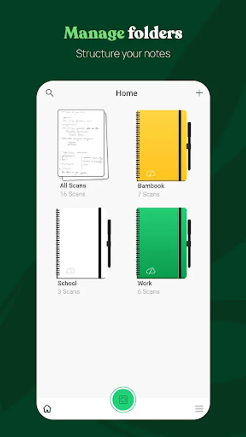 Scan your notes with the push of a button. All Bambook products have a black border around them. This black trim is recognized by the app, due to which it captures purely the page and not the surroundings. The app captures the page and converts it to a black and white scan. You can also use other filters if you would prefer your scan to be in colour.