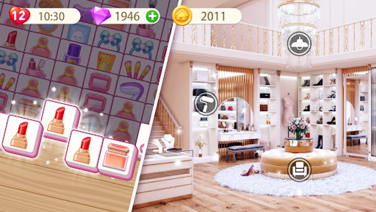 Different from other ""home design"" games🏠, Makeover master will also make you a tile master! While enjoying the journey of your home design makeover, pass the match-3 levels to win more rewards and boosts💎💡. It will train your flexibility and exercise your memory! It will give you a feeling of calm and you will find yourself at a very relaxing mood. Try it out and possess this special experience! ✨