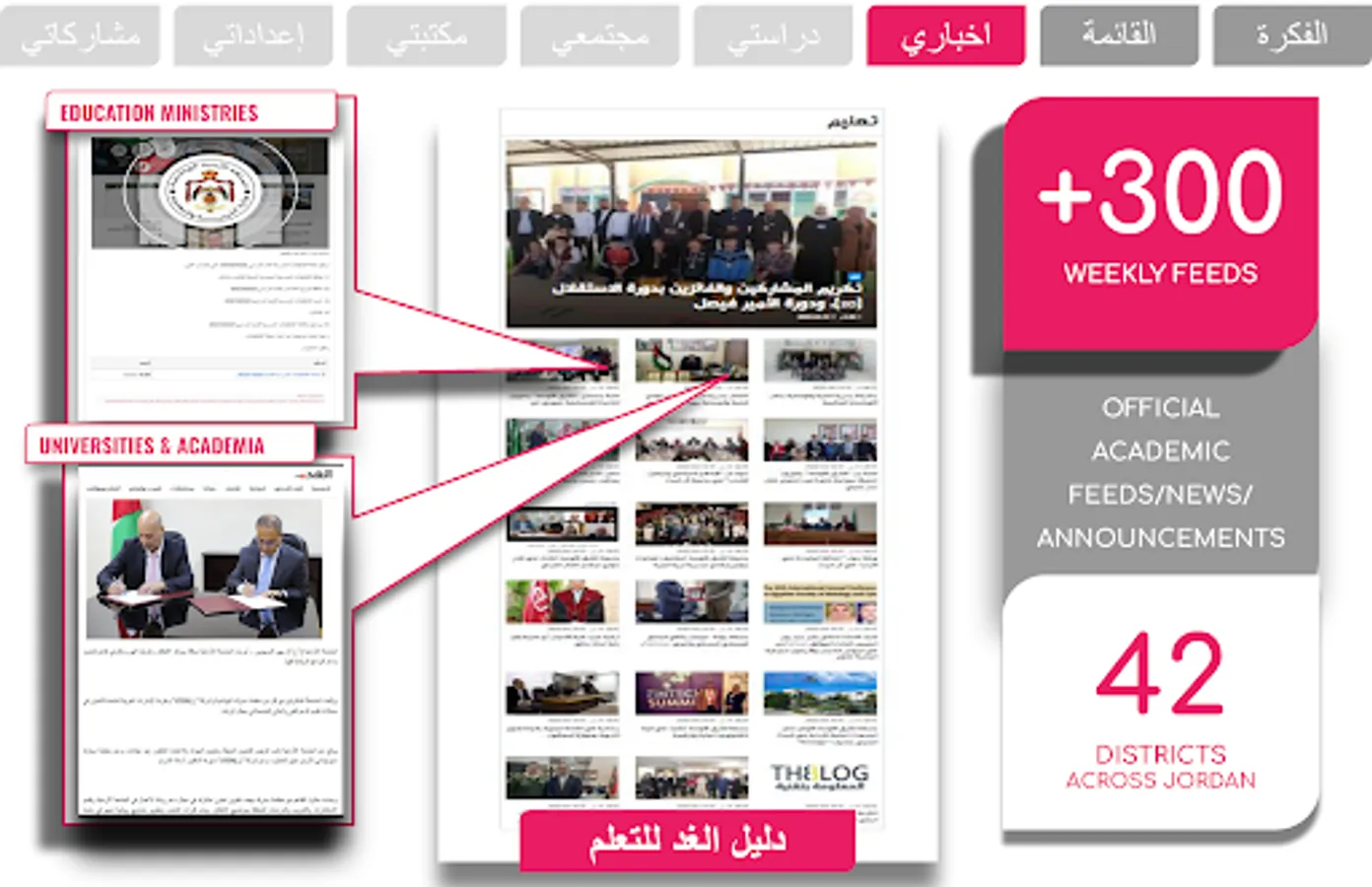 منصة مدارس الاردن تطوعية وتشاركية لمساعدة أولياء الأمور والطلاب والمعلمين، بدعم من الشركات الراعية والحاضنة للطلاب والريادة في المملكة الاردنية الهاشمية. ويتم تطويرها كخدمة مجتمعية مجانية للتخفيف من صعوبات التعلم عن بعد وتطوير وسائل التواصل المتكاملة للتماشي مع احتياجات جميع المستخدمين وقدراتهم